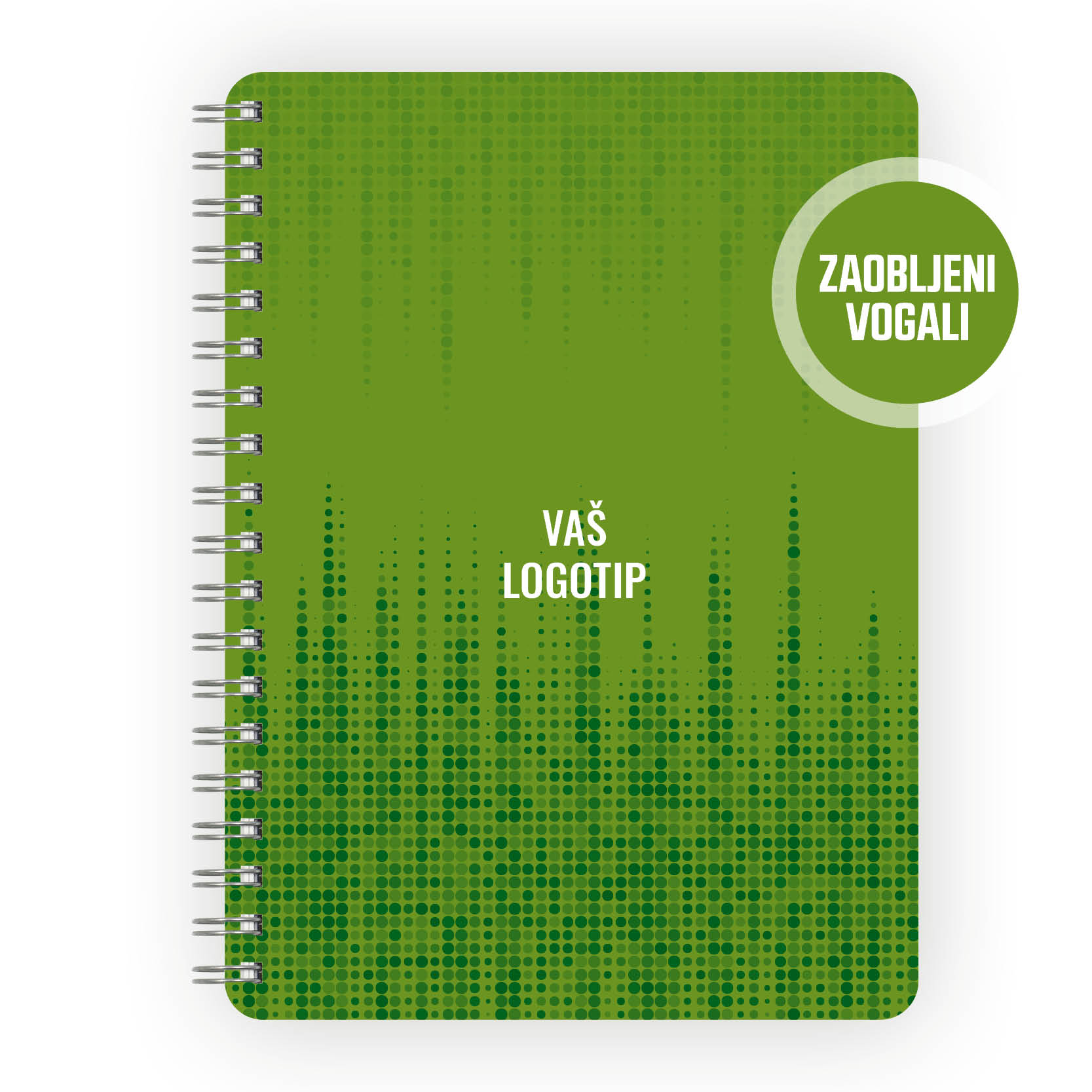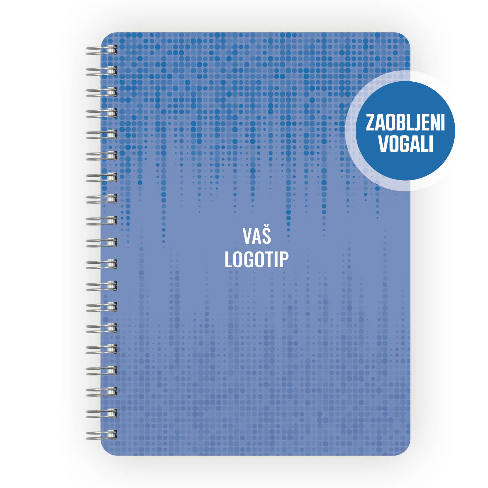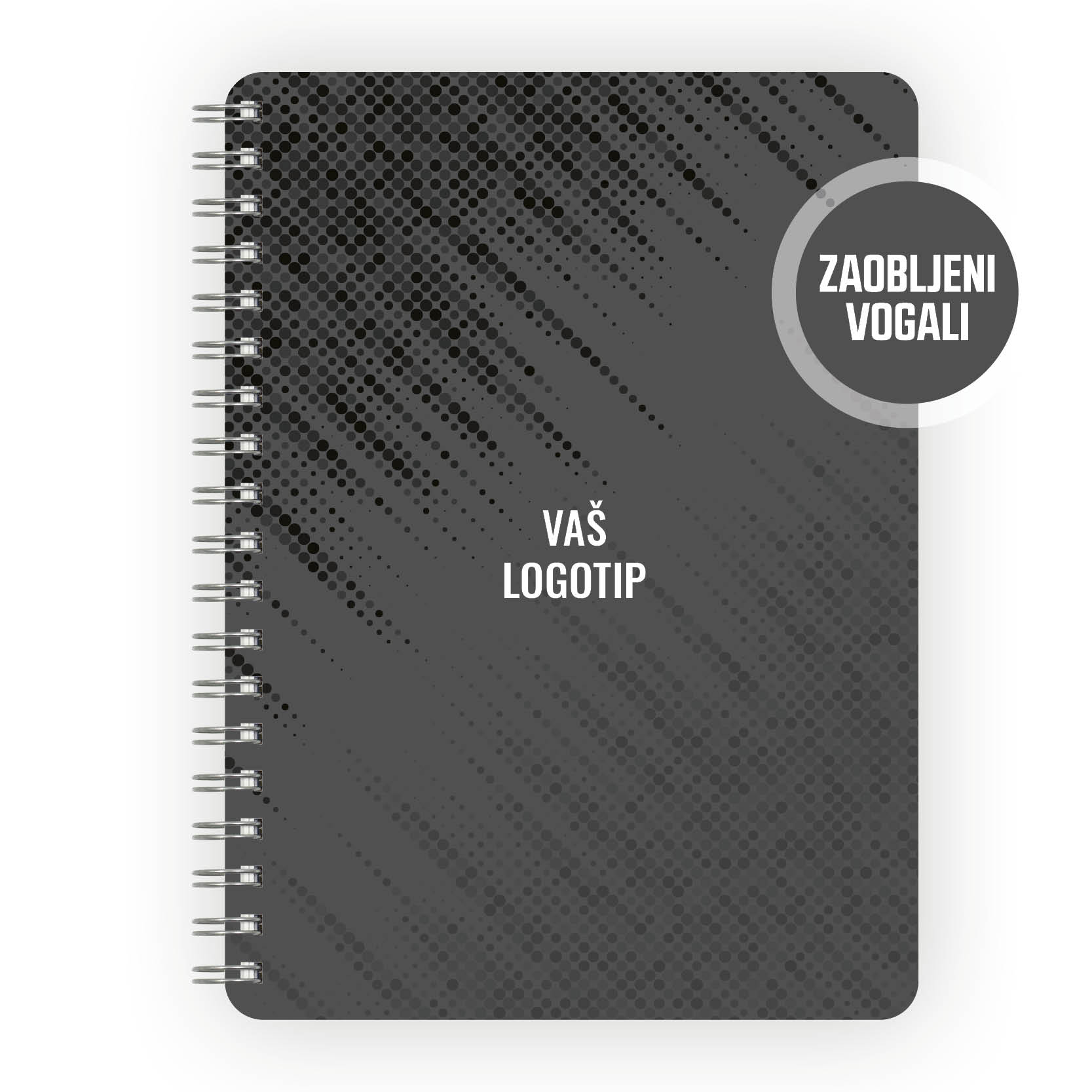 Spiralna vezava, transparentna vrhnja platnica v rdeči, rumeni, modri ali zeleni barvni kombinaciji, z možnostjo dotiska vašega logotipa.