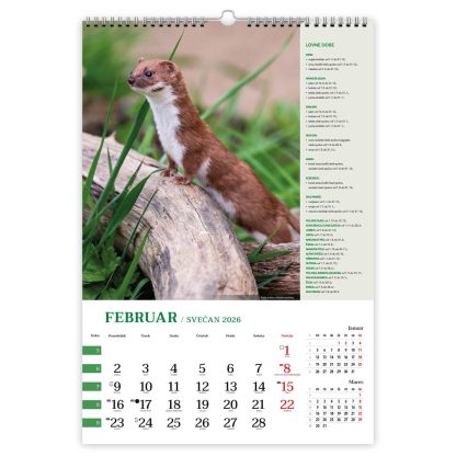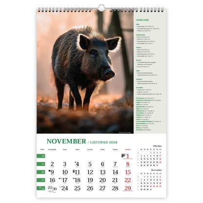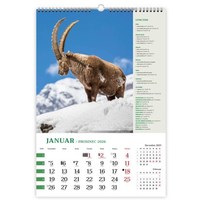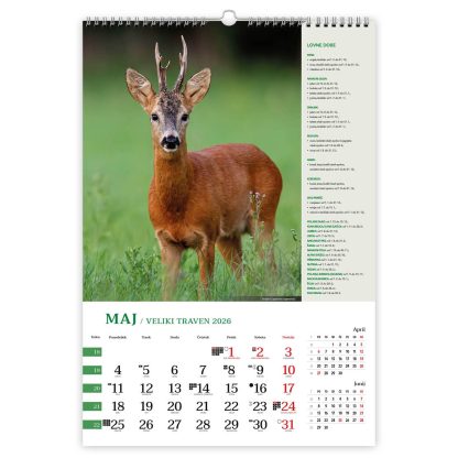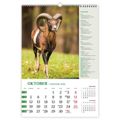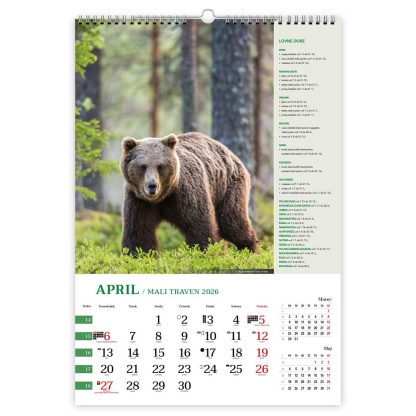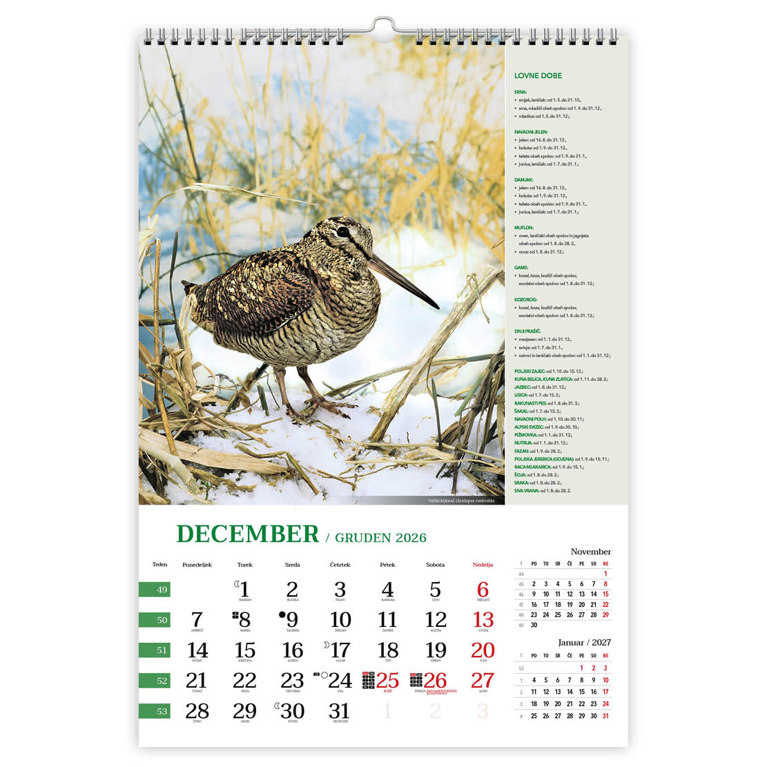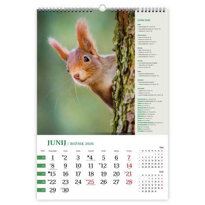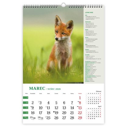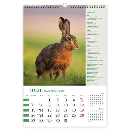 - označeni slov. prazniki, imena, lune, lovne dobe, tedni